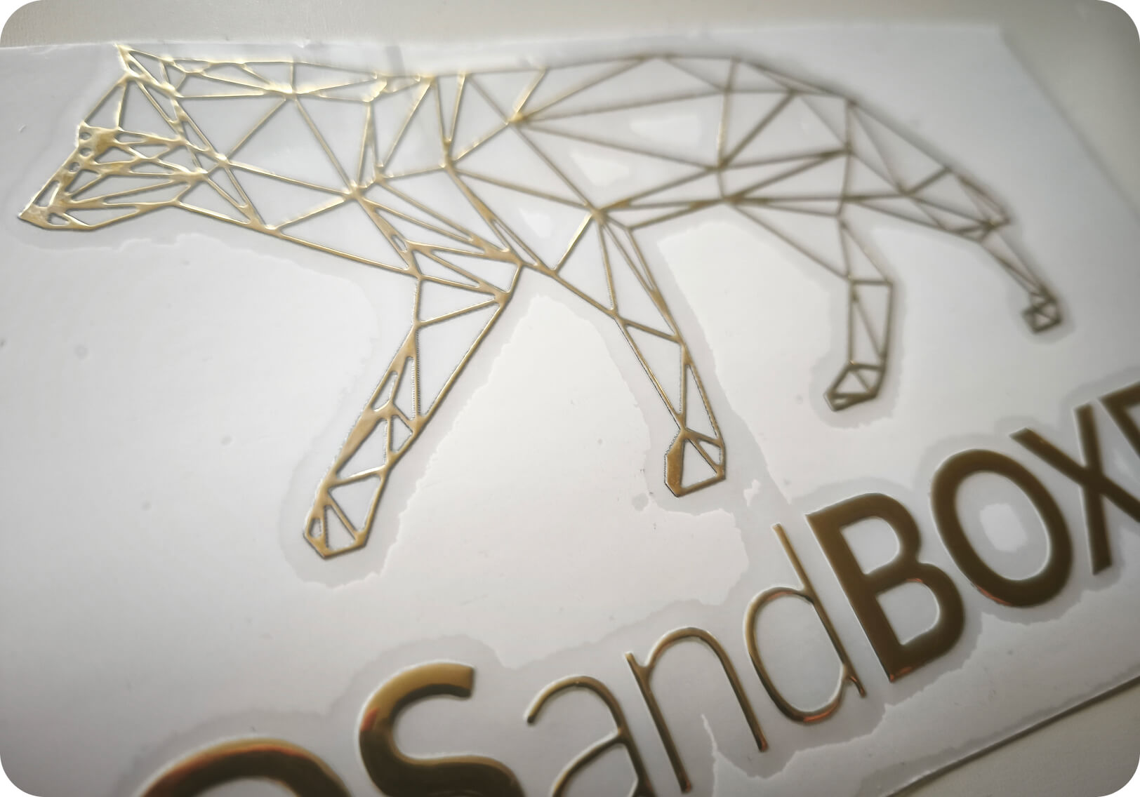 Są drukowane technologią DTF UV Gold. Ich możliwości to: Biały + CMYK, połysk, mat, mat z elementami połysku. Dodatkowym uszlachetnieniem etykiety może
